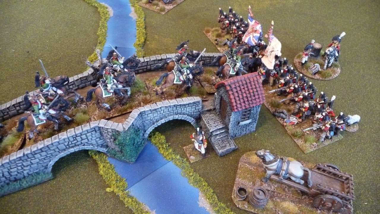 The French Dragoons try to force the issue with the British. Note the Engineer by the bridge lighting the fuse with his cheroot...