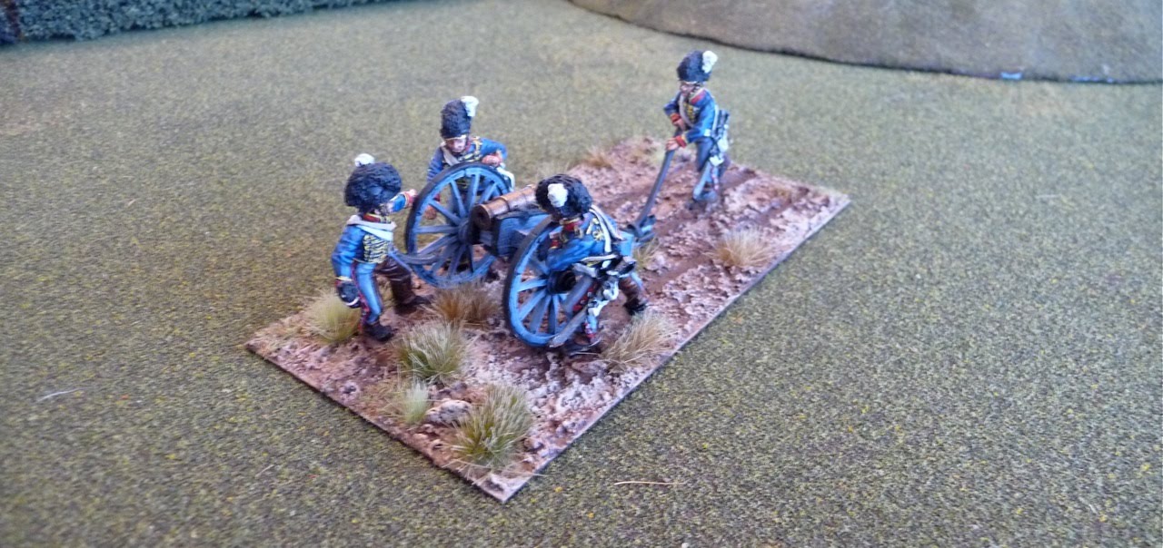 Next are the artillery. Royal Horse Artillery from the Perry twins. One base is a crew running up its 5.5 inch howitzer and the other is a 6 pounder being fired. I dunno what you count for artillery pieces but there are 8 crewmen in total.
