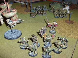 Here's those Space Marines on the bikes. They put a lot of miles on in this battle - drive up, get shot at, drive really far away, come back, get shot at... right here is just before they all drove away again... then they all got killed.