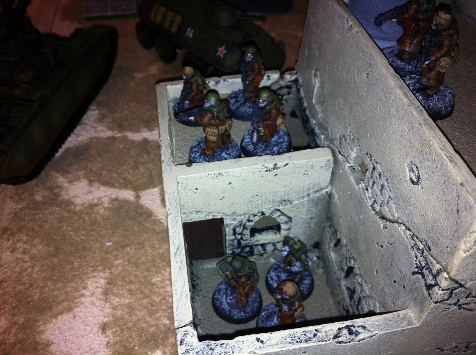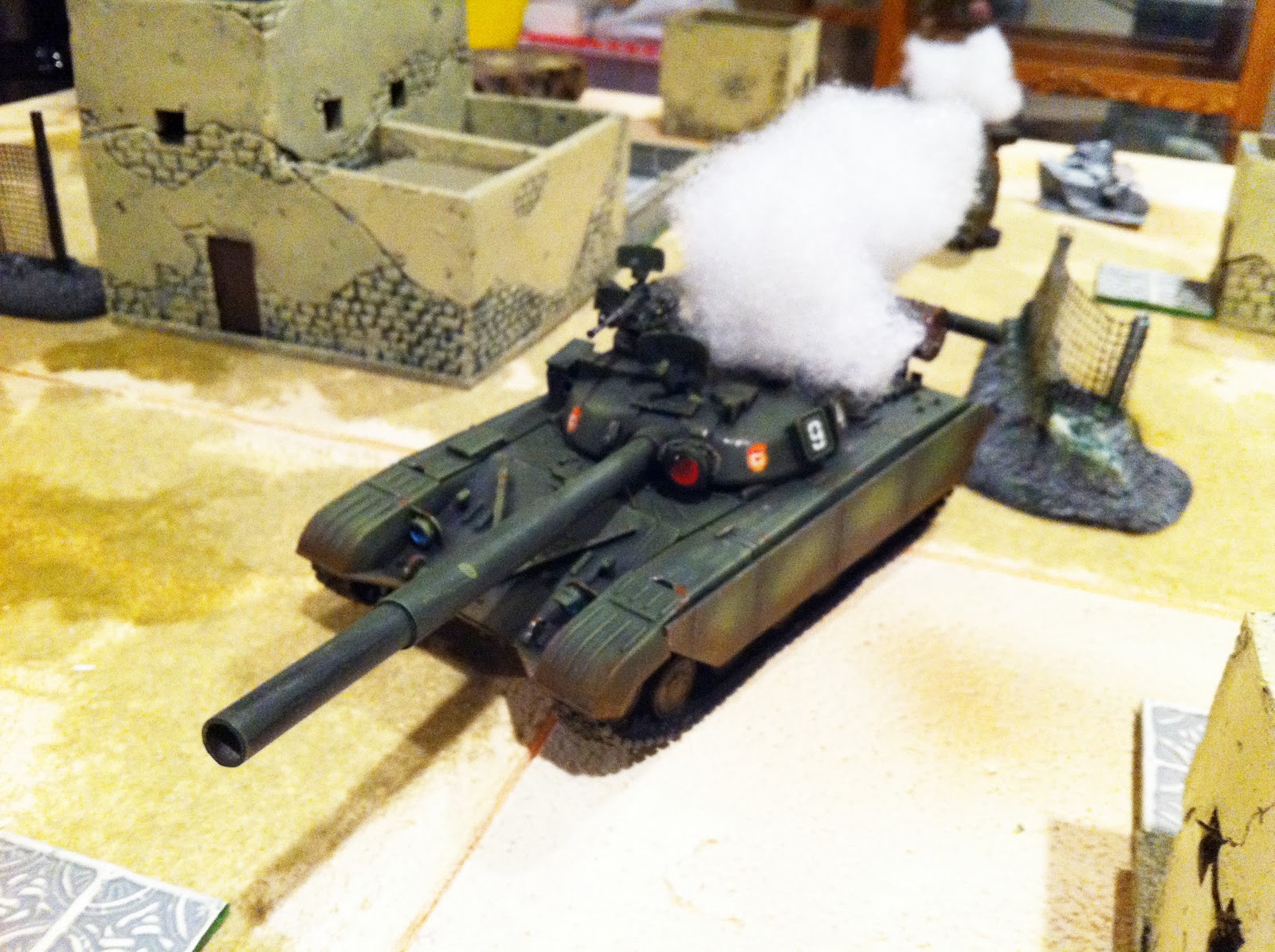 | The objective - a disabled T-640 tank - sits in the middle of a 4' x 4' table |
