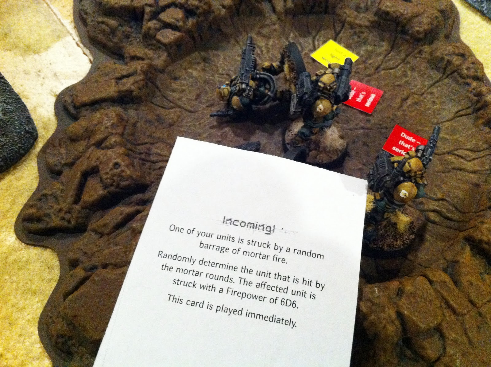 There was one chain of action where we all rolled "1"s for the three teams involved! This series of events cost me a heavy infantry fireteam due to mortars, and cost Dallas his cover. Sigh.