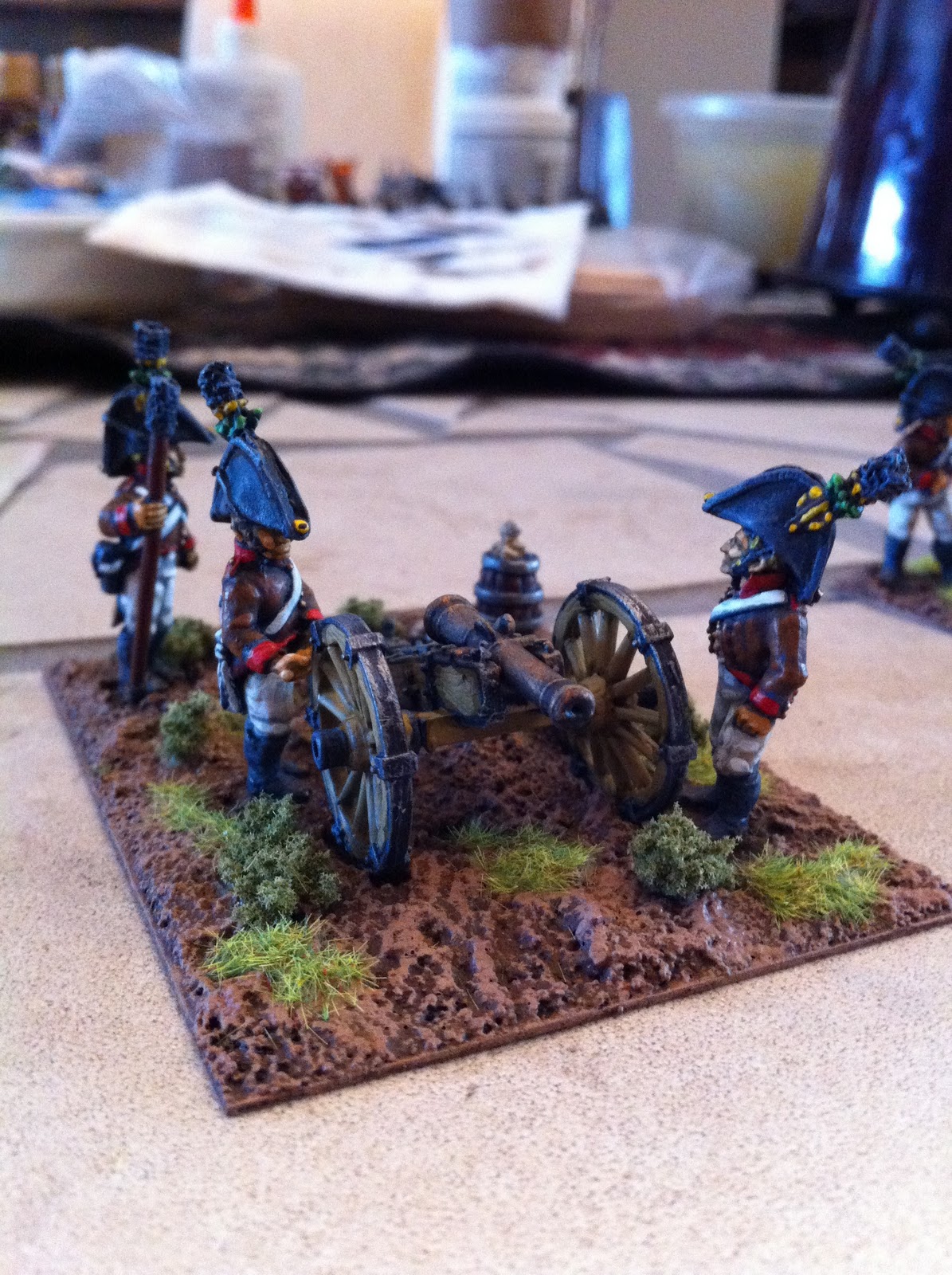 I loathe painting horse-and-musket-era artillery - I hate the wheels on the guns, I don't know what widget is what, and what it's supposed to look like etc. - and I feel like any rules set should have a single gun and team represent the whole battery.