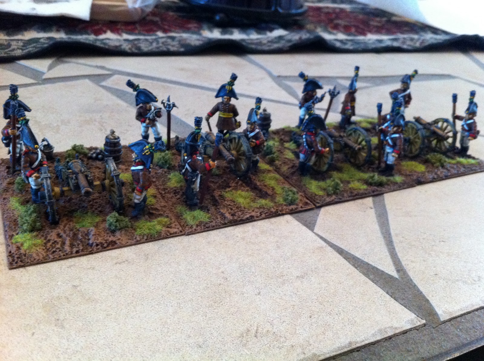 Excellent paint job and presentation I like to see gamers who think more than 1 gun is needed to represent a battery on the battlefield - now how to get certain rule sets to cooperate is another story. How does one get a hold of you groups Napoleonic rules "Food For Powder" Currently using Black powder although some friends of mine in Scotland playtested LaSalle and liked it.