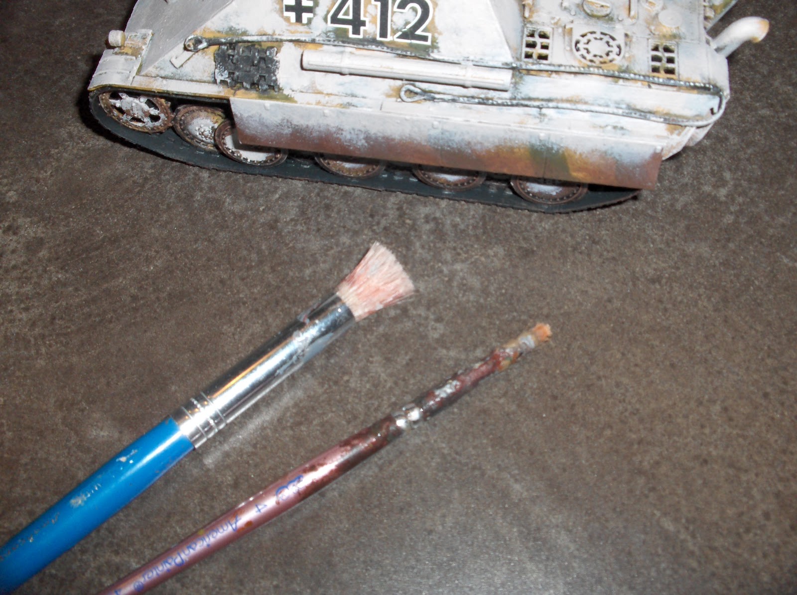 15mm Jagdpanther, I was motivated to clean up an old project I had kicking around. One of the first 1/48 vehicles I built and painted was a Bandai Jagdpanther. I had never been too terribly happy with it but recently had a thought - I could "winterize" the paintjob without much effort, and use it in a possible Western Front winter game with my new