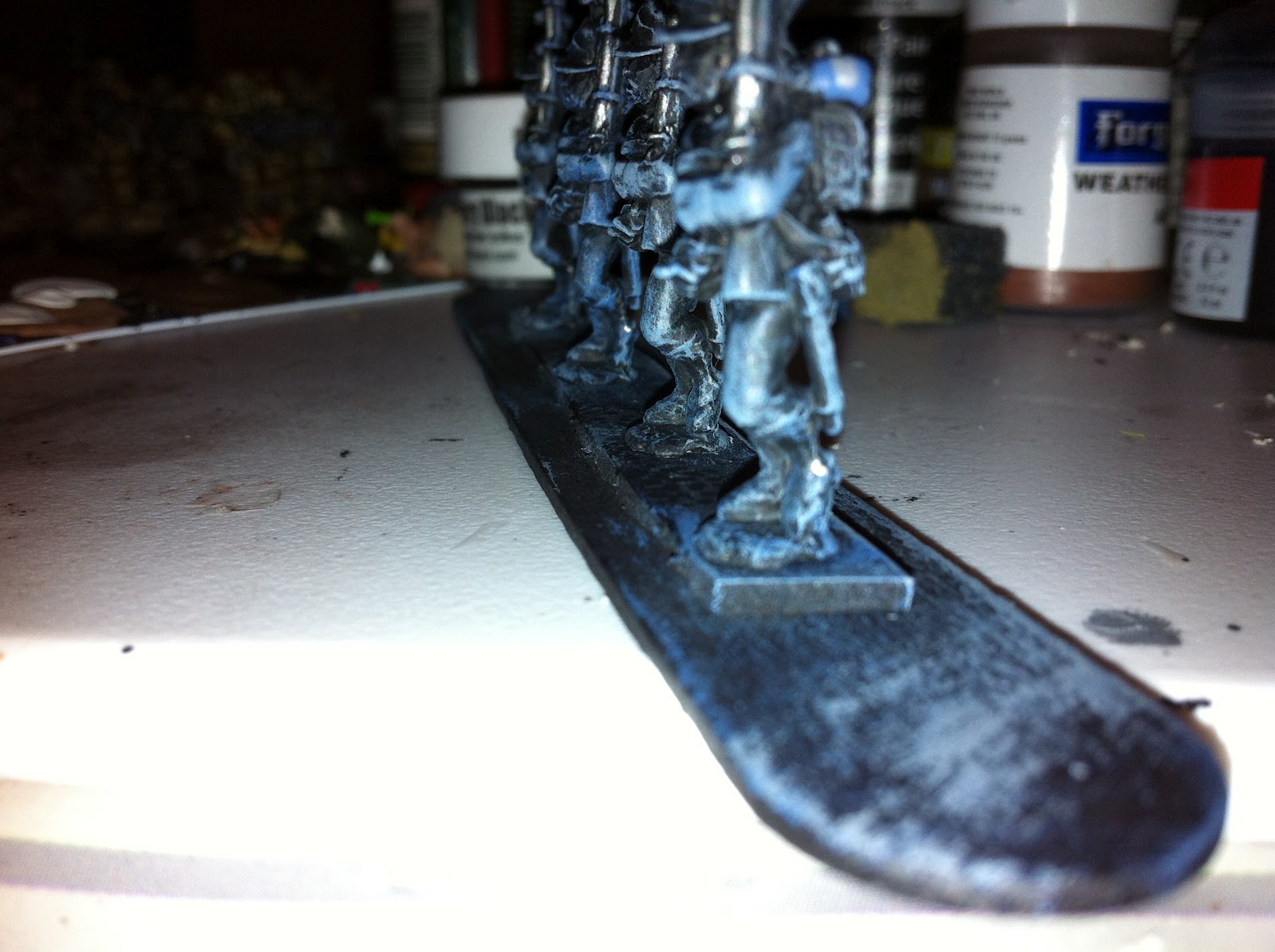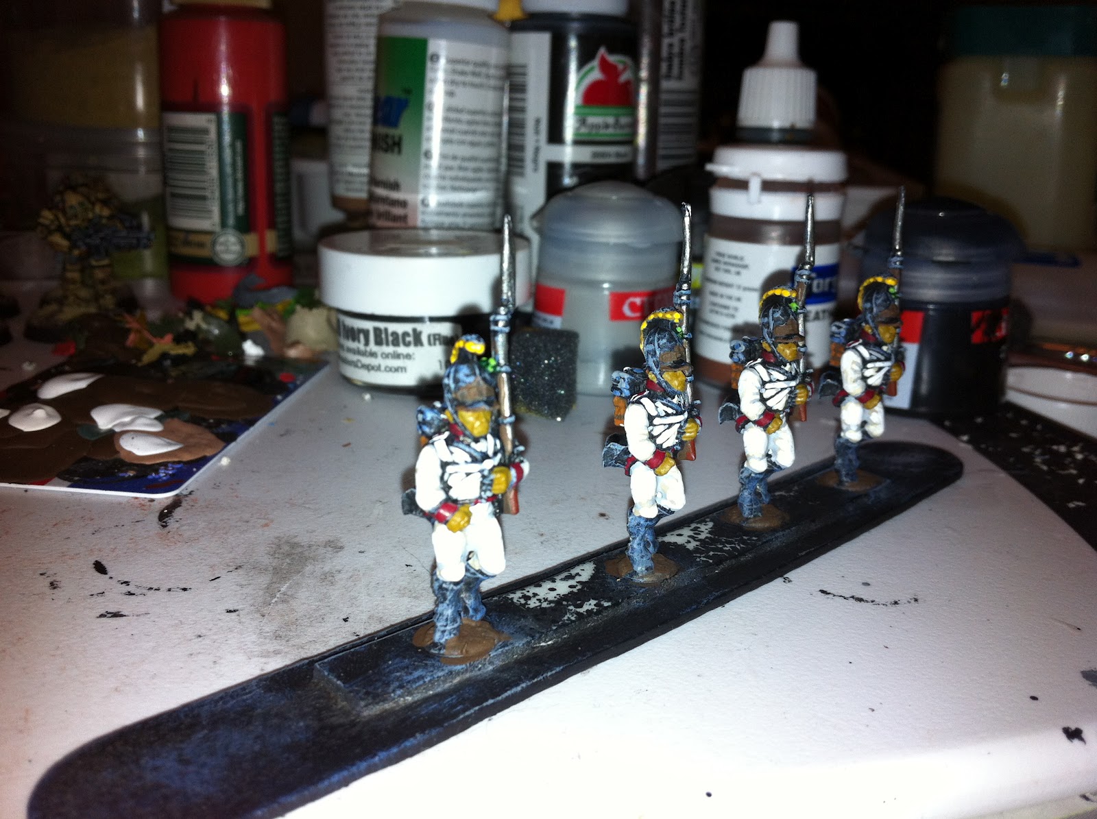 So there you go. The iphone isn't exactly up to 'Eavy Metal-style studio photography (and neither is my painting, for that matter) but this is the manner in which I am plowing ahead with my Austrians. I typically finish a "stick" of four figures in an hour-and-a-half. Hopefully there are some tips here that are useful - or maybe lessons for you to avoid yourself!