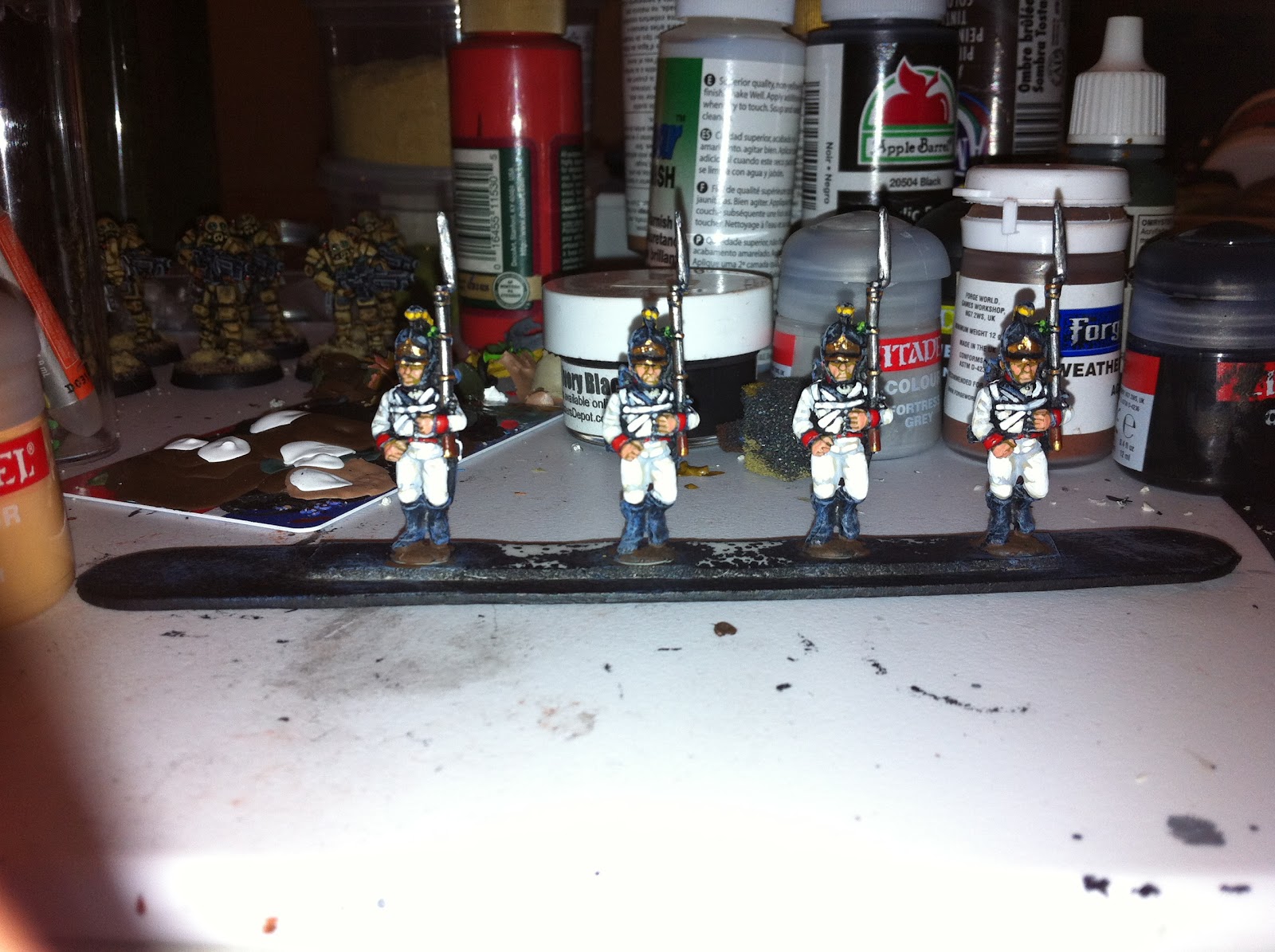 battalions since the Challenge started, and in the process, several folks have emailed/commented asking about the paints/process I used on them. So for fun I thought I would attempt a time-progression-style photo tracking of a group of Austrians I finished recently.