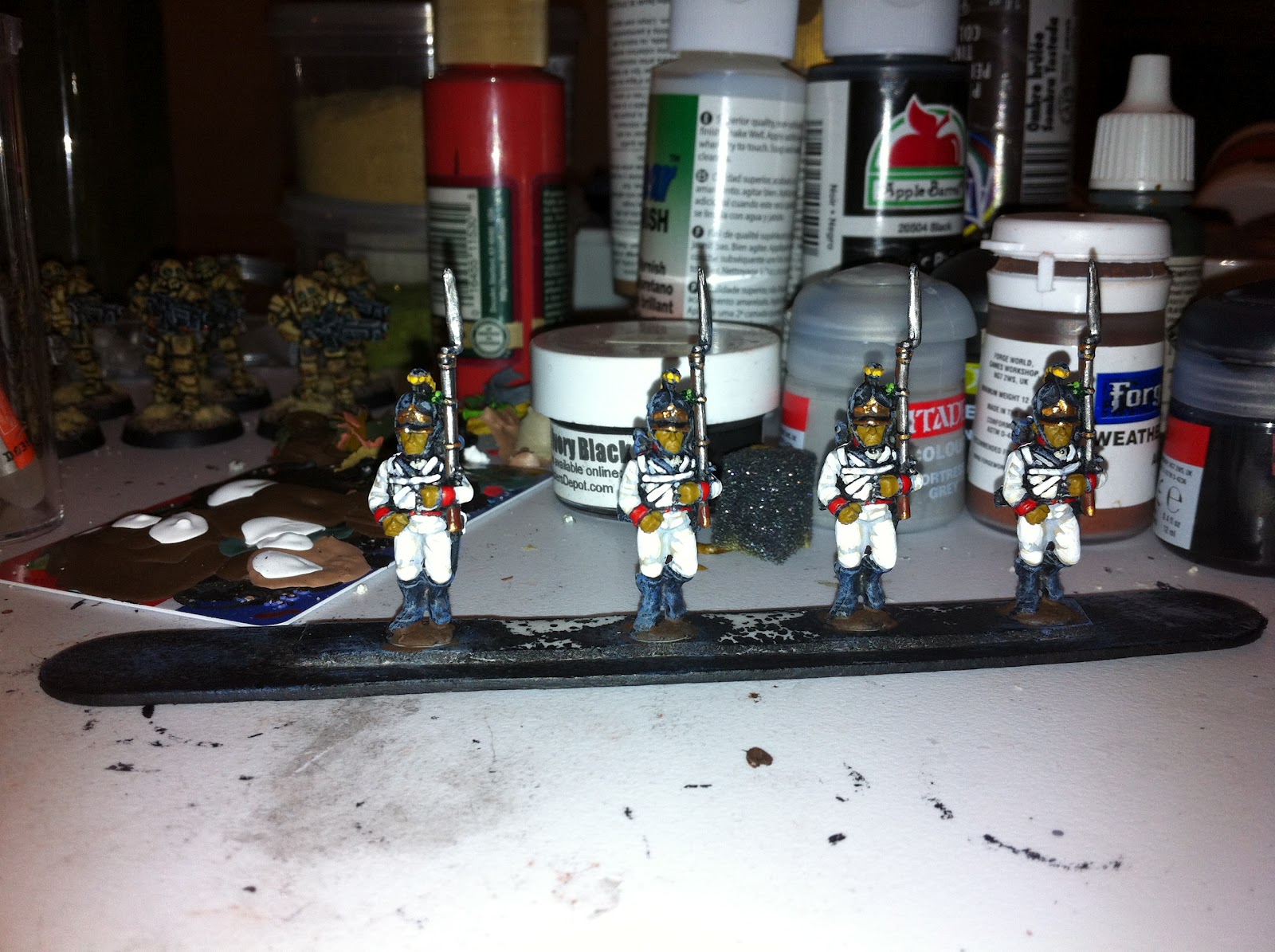| 5. Use Boltgun Metal to paint the bayonets and tubes on the muskets. |