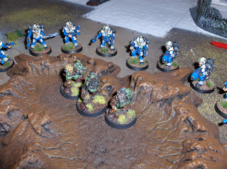 The Guardsmen boldly deployed surrounding the Ork-held crater, peppering its occupants with surprising deadly laspistol fire...