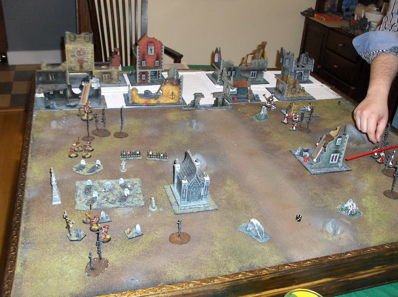 I like Mordheim a lot. Small warbands, fast play and some interesting scenarios provided. I also like using the 4x4 terrain board from time to time and it works well for this game. I'm hoping we can use it for a further game in the "Battle for the Farm" 40K mini-campaign!