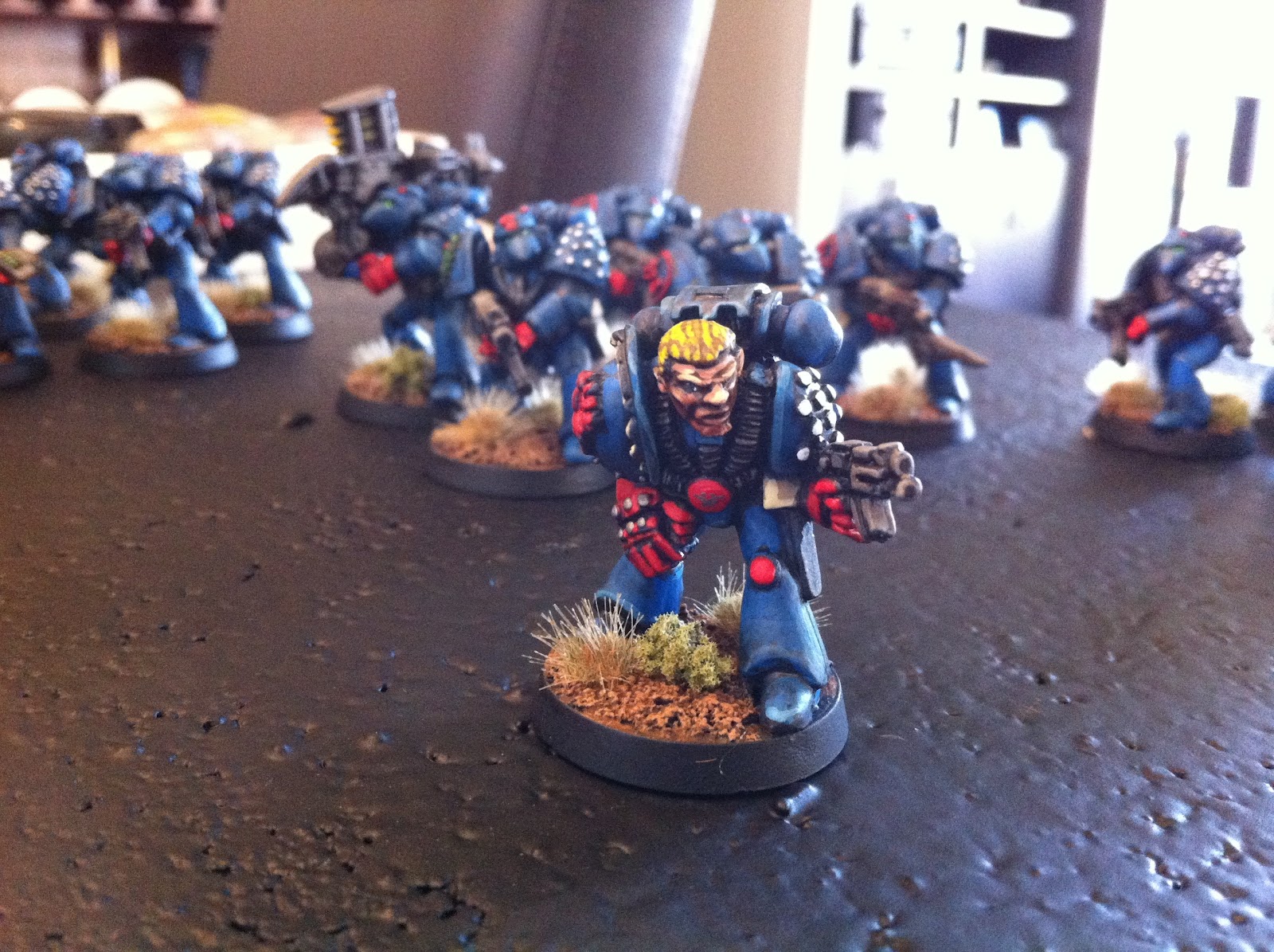 anniversary project of my own - collecting and painting the small detachment of Crimson Fist Space Marines featured in "The Battle At The Farm", the starter scenario from the original Rogue Trader game.