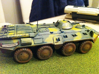 From a wargaming perspective, the BTRs are not as sexy as the BMPs, but these blue collar APCs will stylishly and safely deliver my Commie Forces to battle against insurgents, separatists, NATO forces, Zombies, Big Pharma, militants, reality show contestants, and whatever else we can find at the Fawcett Avenue table - possibly all in the same game (Dallas' Zombie games are very diverse). The 30mm cannon on the BTR-80As will provide some nice extra punch.