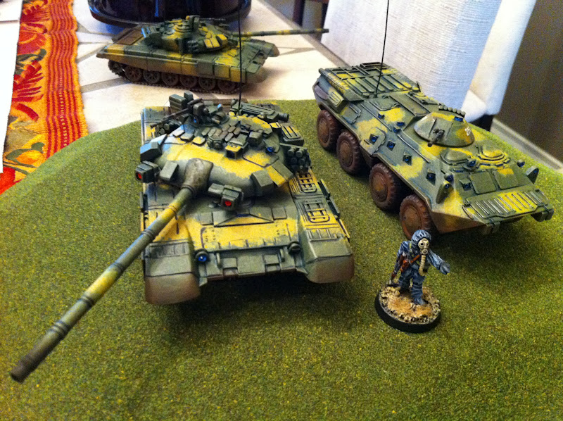 | 1/50 scale T-90 MBTs from Imprint, with 28mm Soviet in NBC gear from Eureka |
