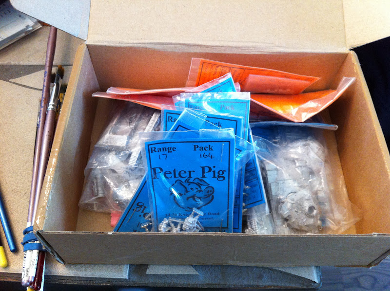 My Golan Heights project is still fully underway - see the picture below for some goodies that just arrived in the post, including infantry and tanks from Peter Pig, and some T-62s from QRF. Stay tuned!