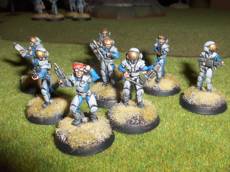 It's been quite some time since I finished painting my Hammer's Slammer's blower tanks from Old Crow, but we haven't gamed with them yest as I lacked any infantry to go along with them. Yes, I'd painted some test models, but once a platoon's worth of GZG NAC Royal Marines had been acquired, the project stalled...