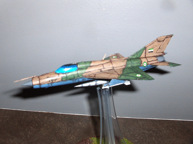 Quite some time ago I picked up a 1/100 MiG 21 "Fishbed" by Tamiya to paint up for the project. I've had it sitting in primer for awhile and after completing the Slammers infantry yesterday, I pulled the MiG out and painted it.