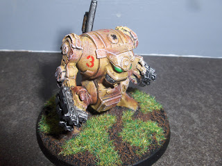 This week I finished off the Rogue Trader-era dreadnoughts for my Howling Griffons force. They had come as a lot from an eBay seller in the UK, and I got a pretty good deal on two of 'em as the models were missing one left arm/weapon. This didn't pose a problem in my mind as I'd intended to use modern weapons on the models anyway.