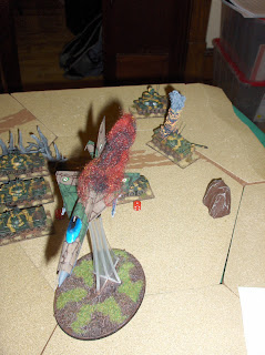 ...the air force showed up! The rules require a "Scottish check" when air assets arrive. If you roll a "1" then the pilot is confused and "blue on blue" is the result - your opponent picks the target of the airstrike and it is resolved against your own troops! Of course, that's what happened, and the MiG attacked our own tank platoon, doing three Pins and halting their advance.