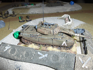 All in all a rather sad outing for the Syrians but nonetheless a fun game! We used the Bolt Action rules with a similar activation mechanic to that we used in our 15mm WW2 outing - the Syrian tanks activated as a platoon of 2 or 3 vehicles while the Israeli Centurions activated individually. This simulates the relative inexperience and lack of tactical flexibility of the Syrians and to an extent offsets their numerical advantage. However, it makes it that much worse when the Pins start to accumulate, since they affect the entire platoon's activation instead of just one vehicle's. The "own goal" airstrikes effectively halted the entire Syrian advance with 6 well-placed Pins. Since the Syrians were rated as "Inexperienced" that meant a Morale check of 5 or less on 2d6 just to activate - and that's before the other "incidental" Pins from shooting and minefield crossing were added. We were looking at having to roll snake-eyes or perhaps a "3" just to take an action. perhaps there is room there to add a mechanic allowing the owning player to exchange a vehicle from the platoon as a casualty in order to remove some Pins. Or maybe the commander should just be sure to roll better on the air support checks???