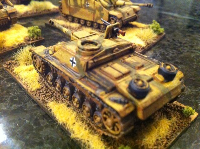 I finally finished the box of 15mm German WW2 StuGs from Plastic Soldier Company. These are all "G" variant, I believe (I had incorrectly identified them as "F"s in the
