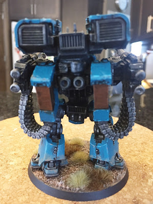 Well, actually it's magnets. The magic comes from Steve B. He assembled this beast for me. Steve is a great guy and he has the mind of a hobby engineer. Since I tend to encounter catastrophe with magnets, I asked Steve to help me out once again. He has already assisted me with a number of tricky kits from Forge World (see here for his ace work on a Fellblade super heavy tank). This kit is a tricky one indeed, with the belt fed weapons hitching up to the pack, an approach the Forge World sculptors love to employ, but the casting quality is not always so easy to work with on the gaming end. But Steve not only assembled it, but he frigging magnetized the whole thing so I can switch out the weapons! All of them! So if I wanted to, I could order the plasma cannons...funny how I say "if", like that's a variable...