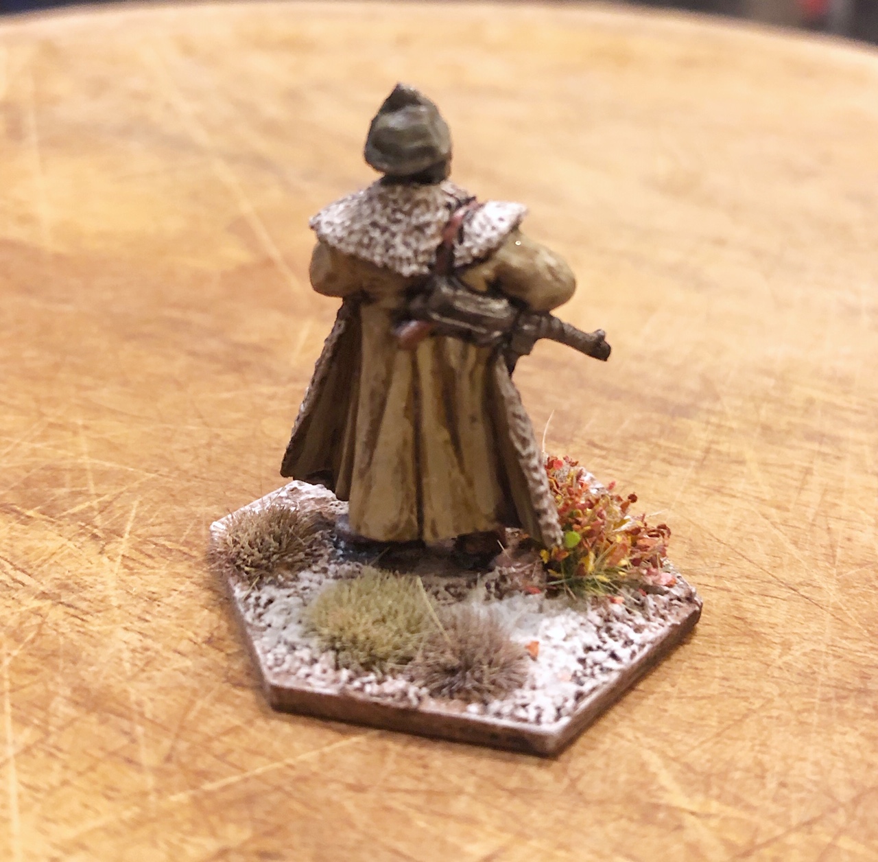 feldgrau and white among the soldiers, so I tried to make the officer look a little different by giving him a non-regulation fur-lined coat, the sort of thing a more senior fellow might manage.