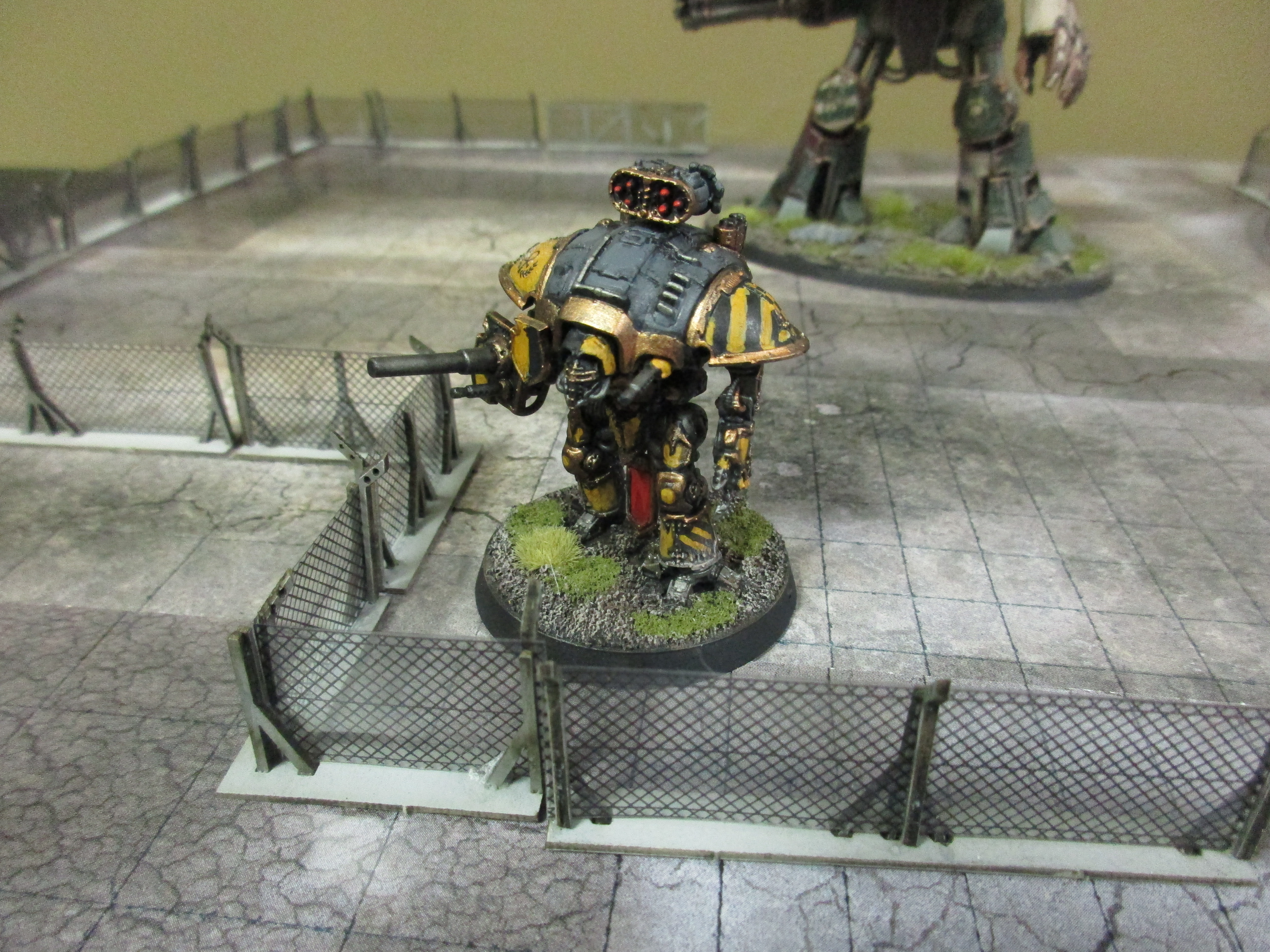 Last year for Christmas, Pam got me some very cool terrain from 4Ground. The first one of these kits to be built was their "Security Fencing" set, shown above with Gilles.