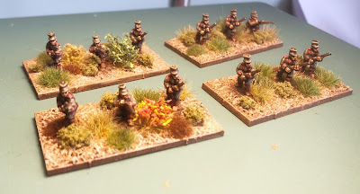 For the "1914" rules each base would represent a company of infantry, so the four bases together on the table would represent a battalion at its full right-off-the-train-from-the-depot strength, ready to continue the advance!