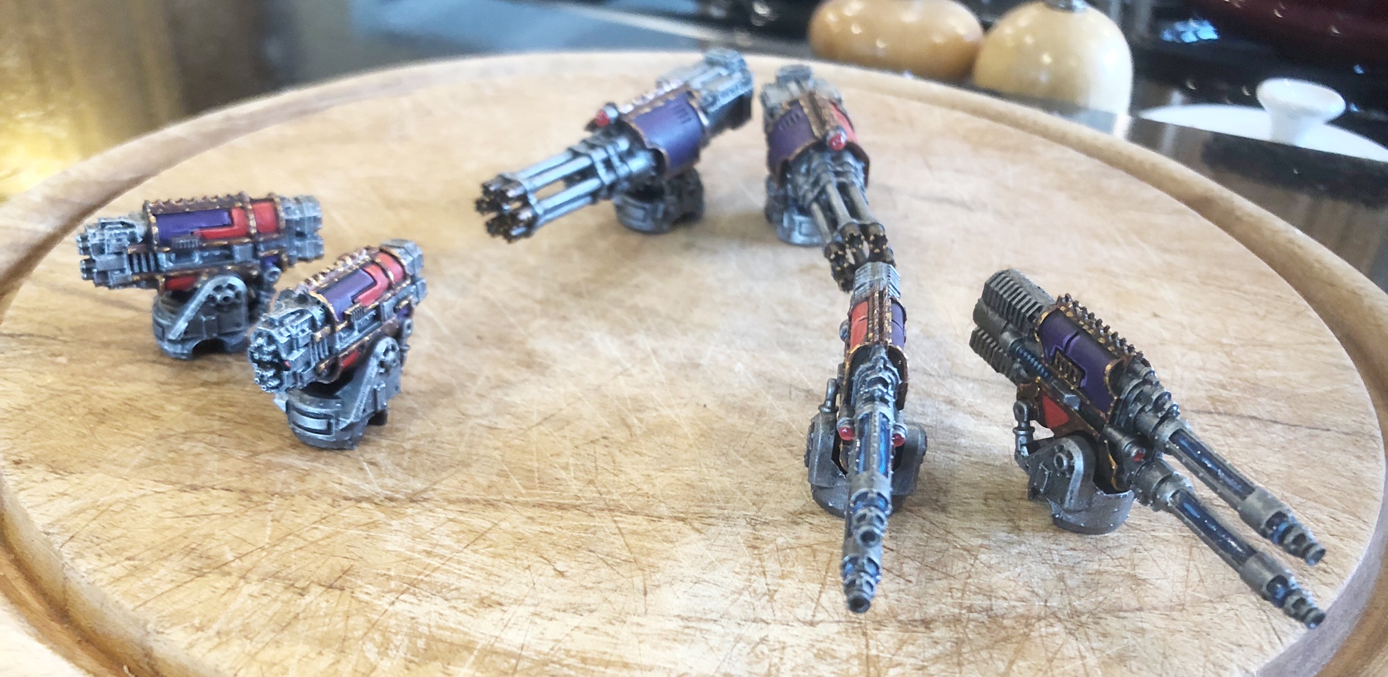 In the game, these weapons will spit out a hail of shots which stand little chance of damaging other Titans, but are excellent at overwhelming void shields. Knocking the shields off of enemy engines is a very useful thing, so it is not like these things are useless - but for me it is a matter of opportunity cost. If you are equipping your Warlord with these guns, you are missing out on some other really cool guns (see more in this post). Best to leave the shield-stripping work to the Warhounds, IMO, and make sure your Warlord Titans are carrying weapons with knock-out power. That said, preferences vary, so I'm glad to have this option in my collection.
