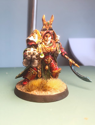 I ordered this figure years ago, right around the time I started painting the figures for the "Burning of Prospero" board game. I love the sculpt - in addition to the fancy bespoke elements, this figure has a nice sense of movement that you don't generally find otherwise on figures wearing the bulky, slab-sided "Cataphractii" pattern Terminator armour.