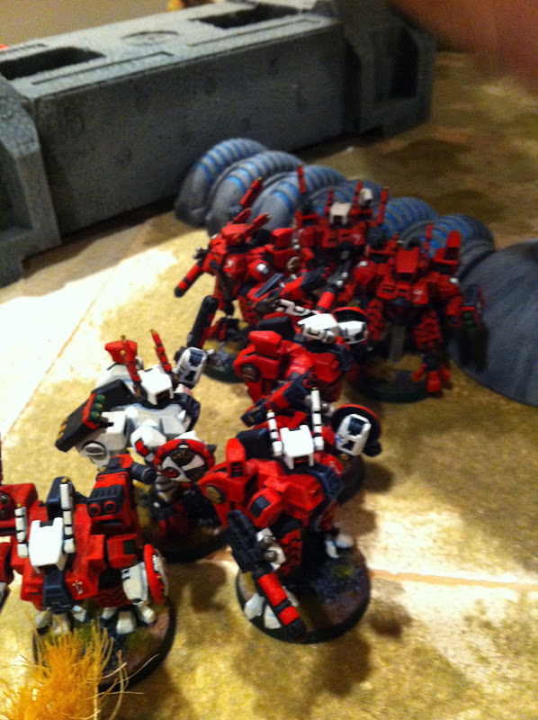 These guys secured the uncontested objective on Greg's left flank. They added some long range sniping too - even the basic Tau guns are really good!