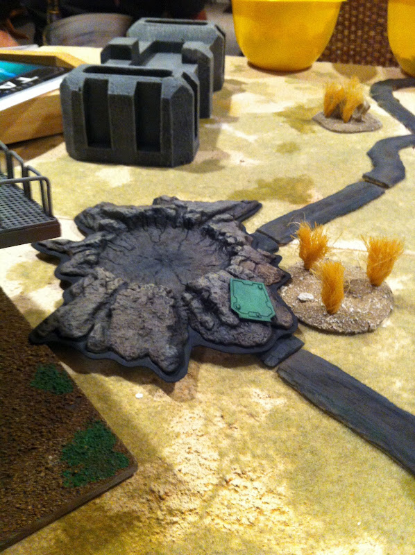 The infanous missile silo can be seen at centre left. It's a cool little model from Armorcast - three pieces: silo top, a moveable hatch, and the missile warhead. As the turns went by we moved the hatch aside and the missile rose into firing position, ready to ruin everyone's day.
