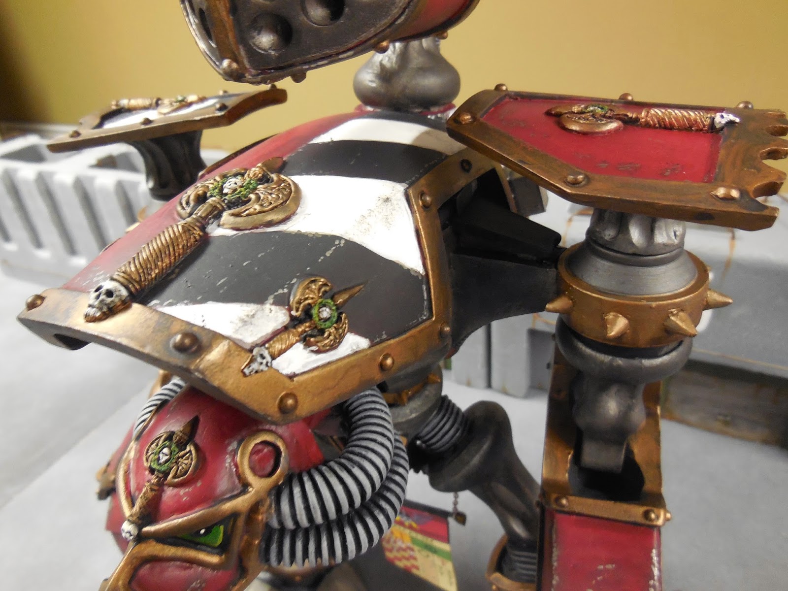 Greg did a nice job on the paintwork. He told me he went for a "cleaner" look as opposed to the dinged-up battle damaged look you'll see on my Legio Metalica titan.