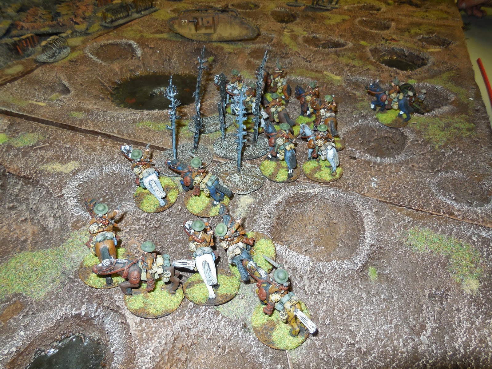 Meanwhile, the cavalry has come on from reserve and pick their way across the cratered landscape, towards a gap in the German lines.