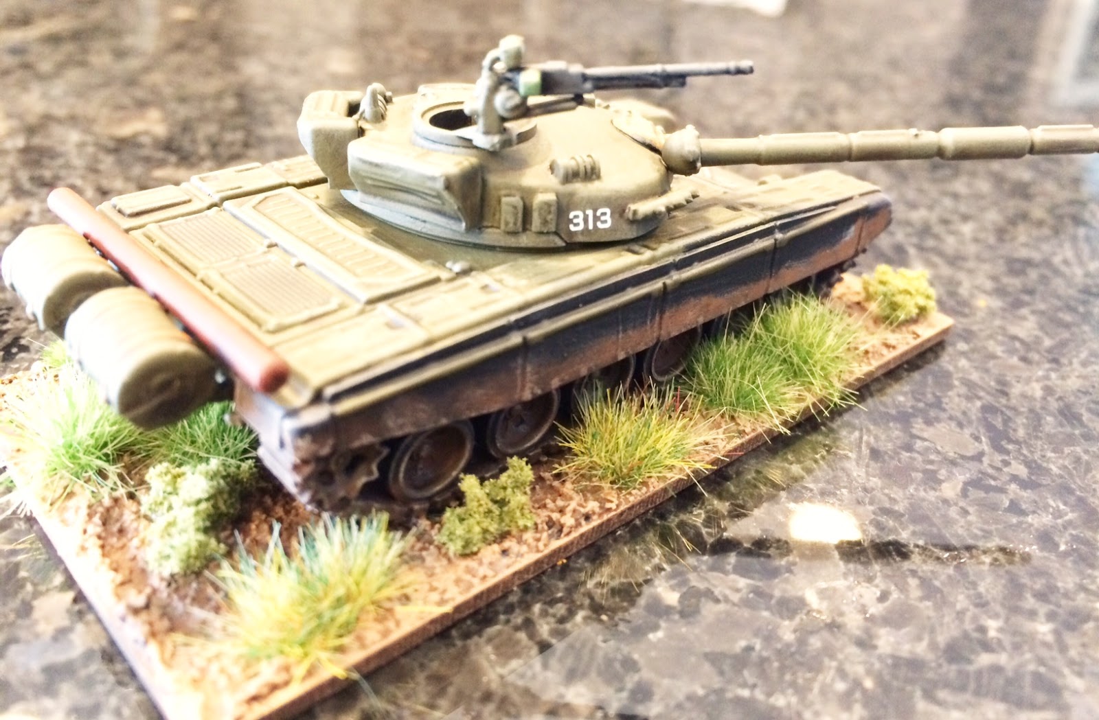 | T-72 test model - note the "bog log" had to be re-glued to a part of the model which was more realistic for extended use... |
