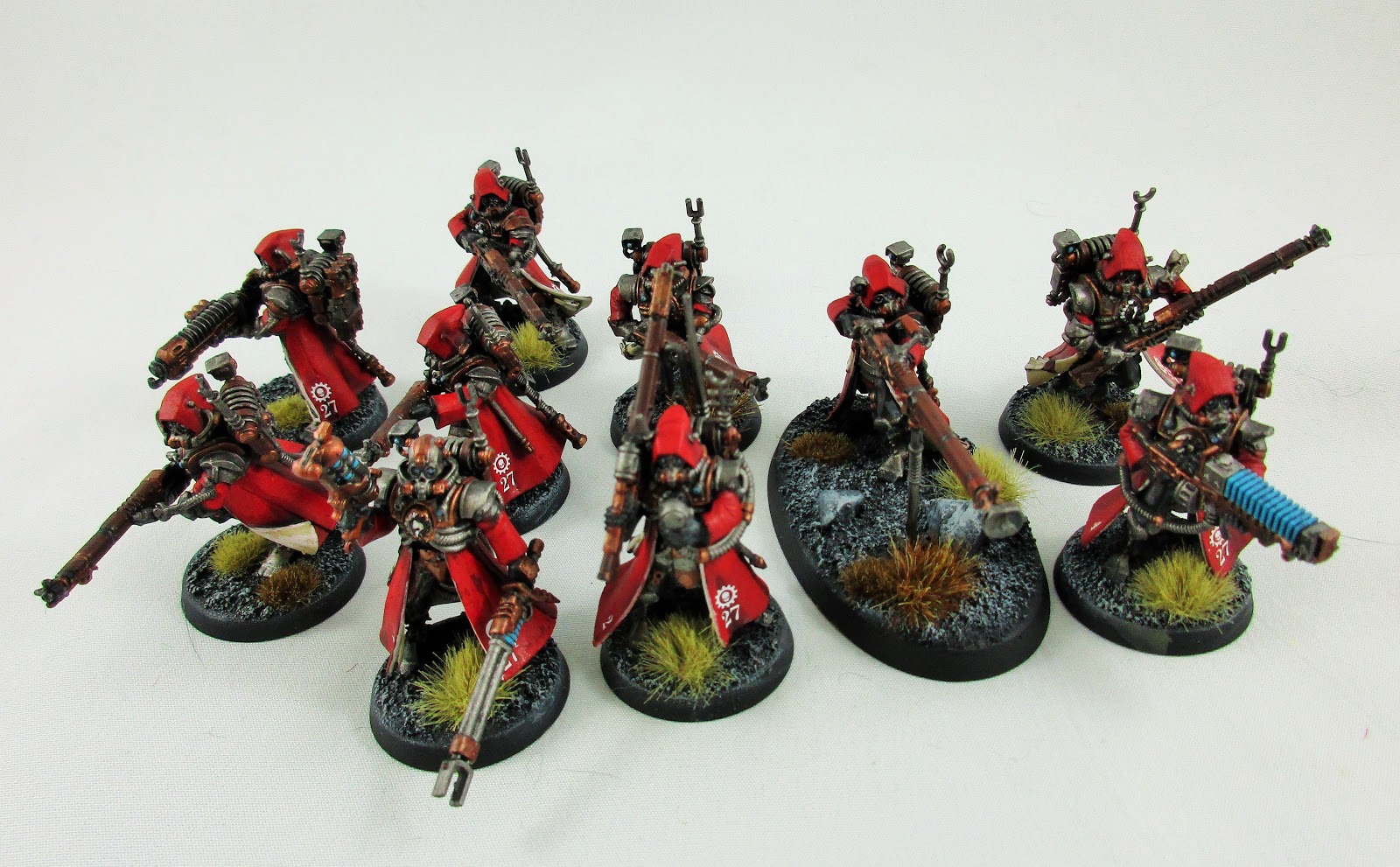 Although my Reaver Titan is painted in the colours of the Legio Metalica, I opted for the traditional Martian treatment on the Rangers. I think it's just my aversion to painting white, but I reckon the iconic Martian livery suits the models best. The red cloaks are painted Mephiston Red, washed with Nuln Oil (along with the rest of the model), re-highlighted with Mephiston then highlighted with Evil Sunz Scarlet.
