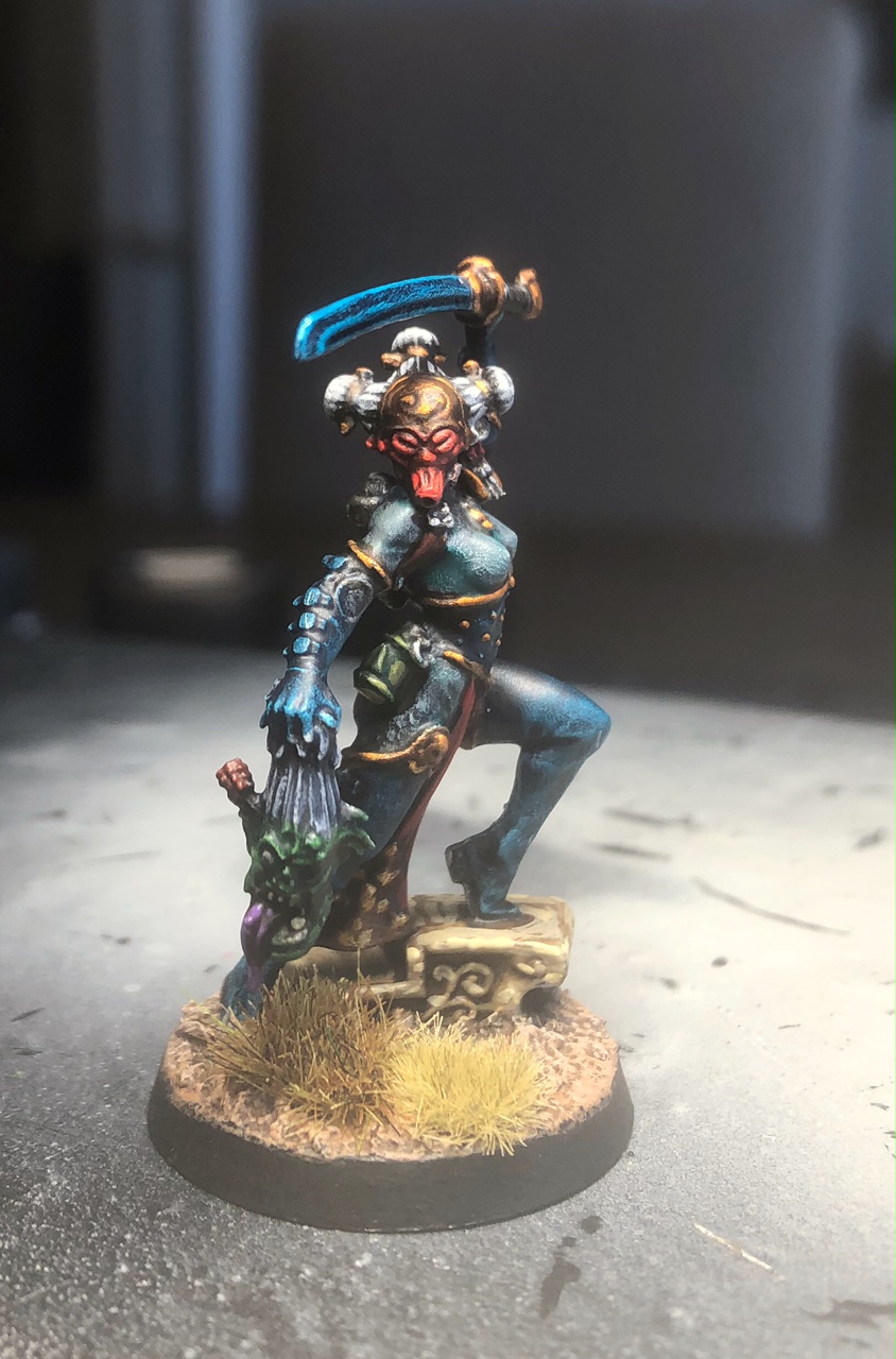 Next are three different sculpts of Éowyn as a woman of Rohan, or in armour from the Battle of the Pelennor Fields. They came from different GW boxed sets of heroes from their Middle-earth range. (Heroes of Helm's Deep, The Fall of the Witch King, and Heroes of the West) Other than having to start over on the faces, these three were the easiest to paint as the armour consists of plain leather vambraces and riding boots. I am happy with the final result.