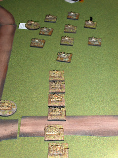We used the giant 8'x5' table for the scenario, and the conditions hinged on whether the Germans could get a majority of of the infantry division survivors (represented by trucks) from one short end of the table ALL the way to the other side.