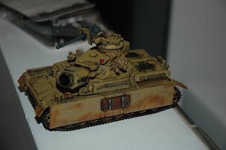 Following our recent inconclusive encounter with FutureKom, it was clear more reinforcements were needed for GünSchwarm. So I finished painting this on the weekend - a Mark XIV "Urban Obliterator", equipped with a semi-recoilless 275mm rocket mortar, coaxial 25mm cannon, and some slight armoured protection. Perfect for GünSchwarm urban development projects.