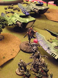 I got to play on the Eldar side. Which meant the game went GREAT for me. Don't think my Imperial Guardsmen will be able to pull the same "catch me if you can" strategy though...