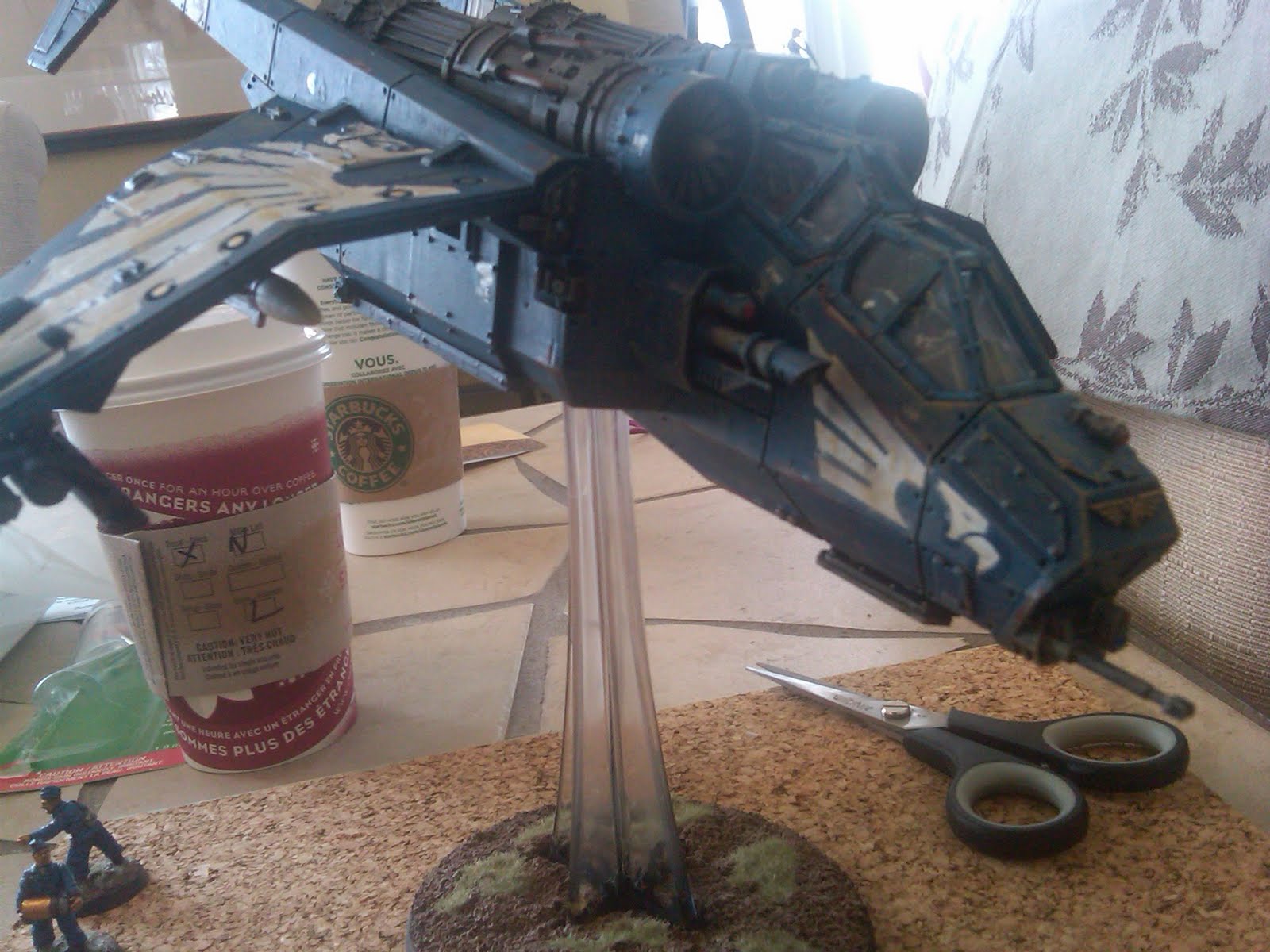 All of the decal softener, water etc. was not helping. I still had trouble with silvering too, despite gloss coat etc (I must have messed up something). To make the most of it, I figured I would really, really weather it a lot, and touch up with some white and blue paint here and there. I hope, from a couple feet away, the model looks more like a battle-worn skimmer than something with a bad decal job.