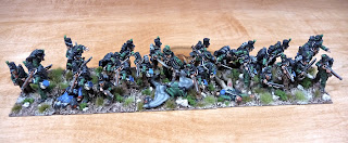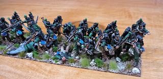 I've been beavering away getting some stuff ready for a Napoleonic game we're having in Saskatoon at John's new place tomorrow. This one is just off the workbench. The 95th Rifles... Yeah, some Conscripts may smirk at this as they well know my acerbic opinion towards British Napoleonic gamers that just have to have a unit of the 95th before all others. Well, colour me green and call me Obadiah Hakeswill but I've succumbed and done one up as well. (I try to rationalize this in that at least I've painted some regular line battalions so I should be able to treat myself to fielding an elite unit from time to time. Yeah, I know, but the 95th? It's sooo... Sean Bean.)