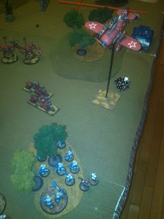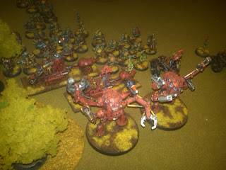 The Imperial Guard force was a platoon of three tactical squads, a command section, two Thudd guns and two Sentinel walkers. The Ork force included "boyz", two "super-slaughterer" dreadnoughts, a war-track, two "skorchas", a crazy traktor cannon, and the debut of the Red Barun!