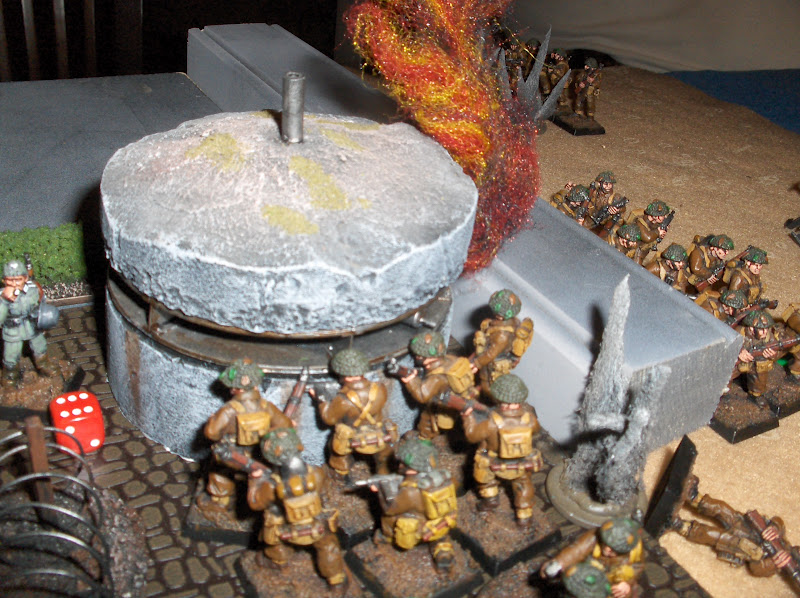 Rileys move off the beach to close assault the German MG bunker...