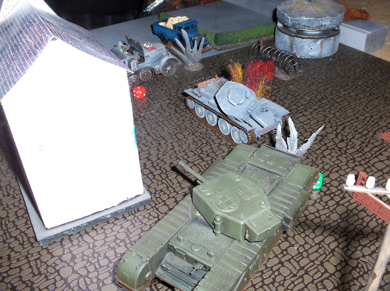 StuG III in the centre of the table is continually suppressed by Churchill fire...
