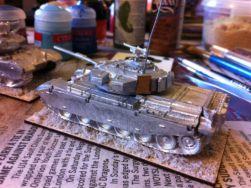 Syrian kit and some Syrian infantry, I wanted to get started on some test models to represent the Israeli side of the conflict on the table, namely the iconic Centurion Sho't tanks. Here are some WIP pictures, and some pictures of a first finished tank. I just don't know about the colour...