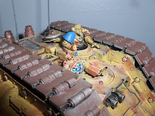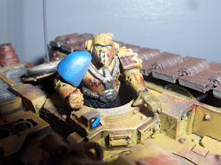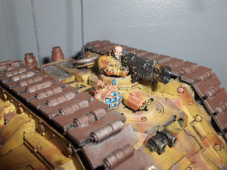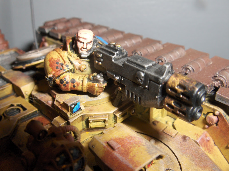 I also painted a couple of crew figures for the Land Raider. Above is a modern Marine crewman with a pintle-mounted multi-melta. Crew figure and weapon are one piece and lift straight out of the cupola.