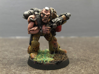 This is a conversion of the mohawked assault trooper with the plasma pistol shown above. His head was replaced with a plastic RTB-01 "beaky" helmet and the hand flamer swapped out for a bolter from the RTB-01 frame - thanks Greg!