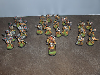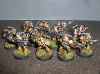 The newly-recruited reinforcements en masse, ready for a progenoid-gland inspection. They need to have their Griffon shoulder pad decals applied but are otherwise ready for battle.