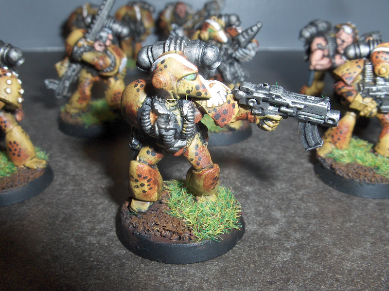 A group of regular grunts armed with bolters and autoguns (!) plus the previously pictured flamer.