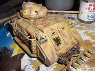 I didn't glue the chassis top plate to the hull but rather, left it as a friction fit. I also painted a set of standard Rhino top hatch doors and can swap these in if I want to field the model as a standard Rhino instead (see bottom photo). The model was weathered with powders and decals applied from Ginfritter (griffons) and an old Skif T-64 kit. Once I get my Tamiya mud stick I might slap some of that on too.